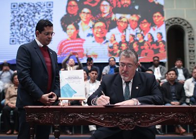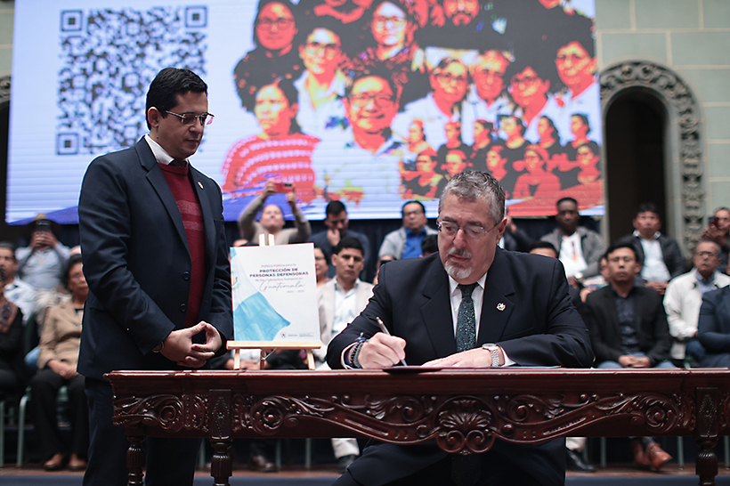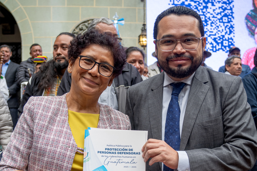 El gobierno del Presidente de la República de Guatemala, Doctor Bernardo Arévalo de León a través del Ministerio de Gobernación (MINGOB) y la Comisión Presidencial por la Paz y los Derechos Humanos (COPADEH), lanzó oficialmente la Política Pública para la Protección de Personas Defensoras de Derechos Humanos en Guatemala 2025–2035, una iniciativa histórica que busca garantizar la vida, integridad y labor de quienes promueven y defienden los derechos humanos en el país. La política pública fue validada en Consejo de Ministros durante el acto público de lanzamiento realizado en el Patio de la Paz del Palacio Nacional de la Cultura y posteriormente, el Presidente Arévalo entregó el documento a la Familia Gudiel Álvarez, peticionarios del caso “Defensor de Derechos Humanos Vs. Guatemala”.
