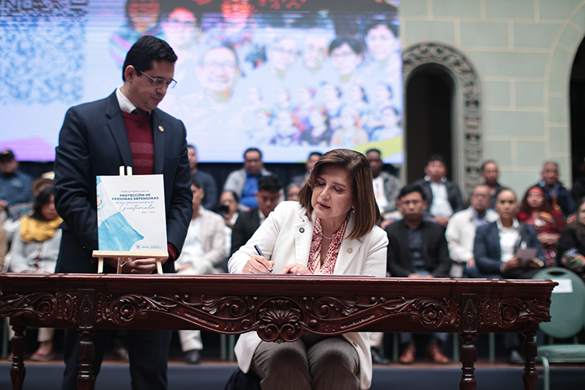 El instrumento de política pública que hoy entregamos compromete a las instituciones del Poder Ejecutivo a promover el respeto de los derechos humanos de las personas defensoras, y a reconocer su rol en una sociedad democrática.