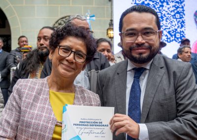 El evento contó con la participación de defensores de derechos humanos, autoridades ancestrales, Cooperación internacional, cuerpo diplomático acreditado en Guatemala y periodistas. Esta política representa un paso firme para saldar una deuda histórica con quienes han dedicado su vida a la defensa de los derechos humanos en Guatemala.