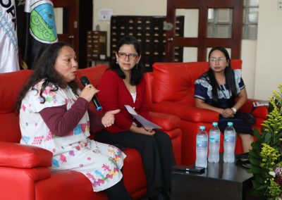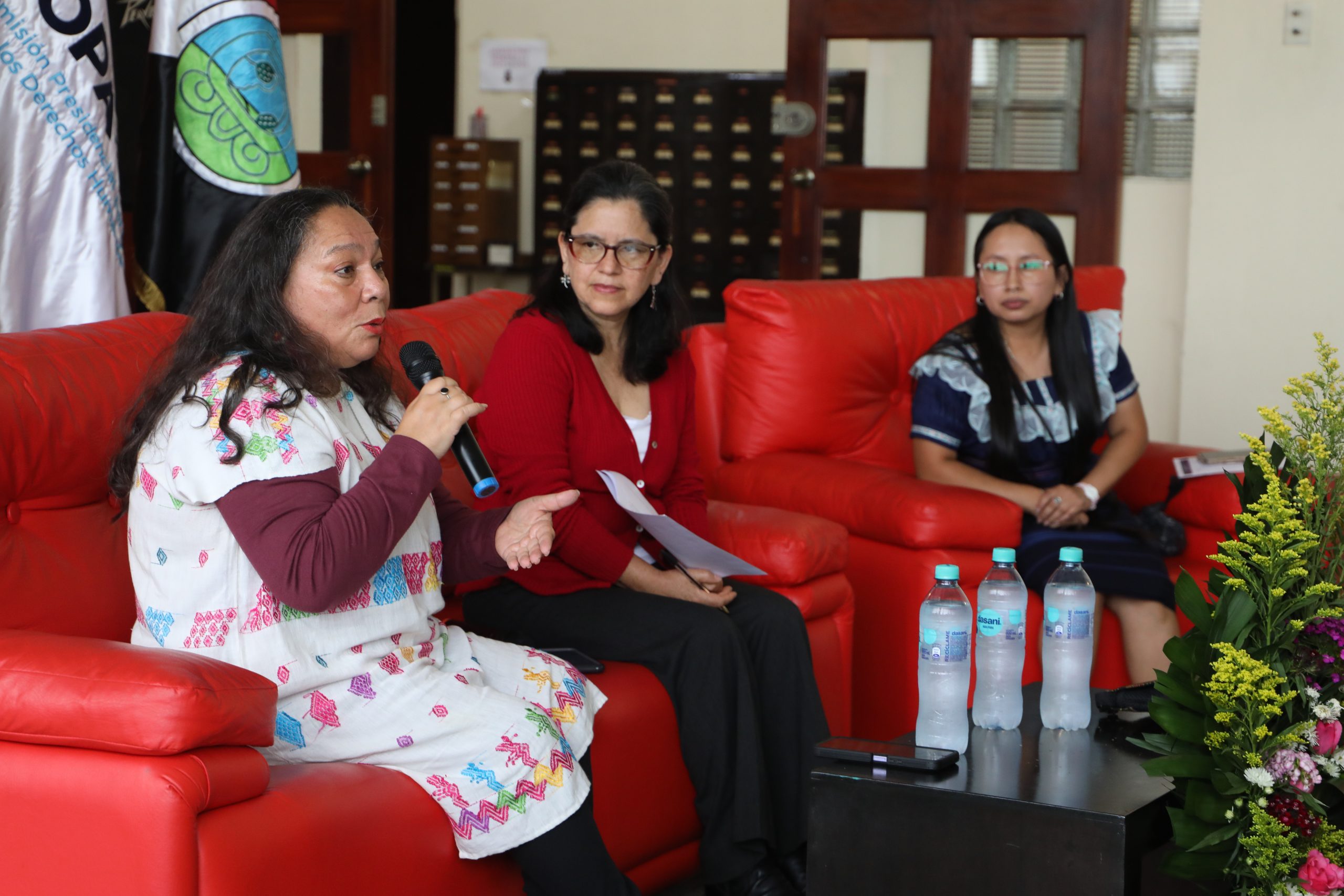 Como panelistas participaron Ana Silvia Monzón, socióloga feminista y referente en estudios de género, y Yamanik Cholotío, defensora de derechos de los pueblos indígenas. Ambas compartieron análisis y experiencias sobre la resistencia, la memoria y la participación política de las mujeres en procesos de defensa de derechos humanos.